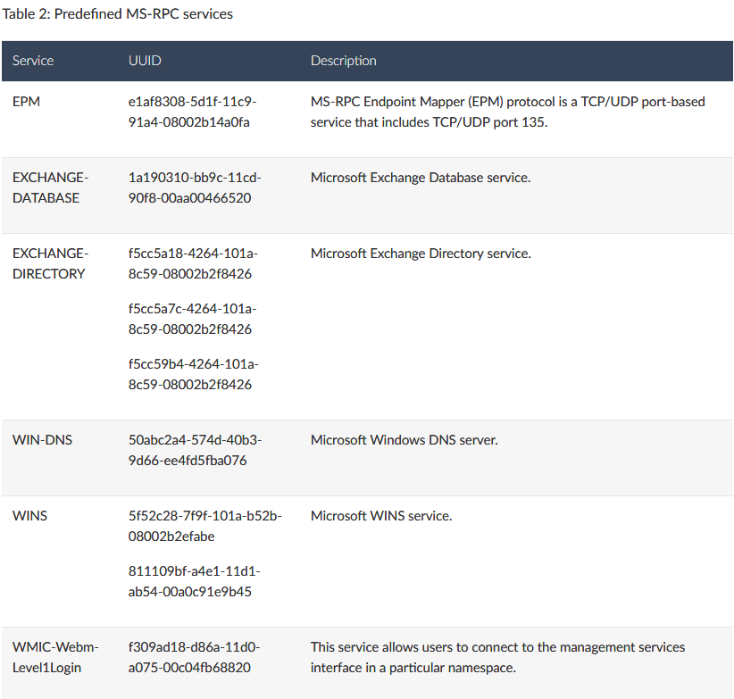 预定义的MS-RPC服务