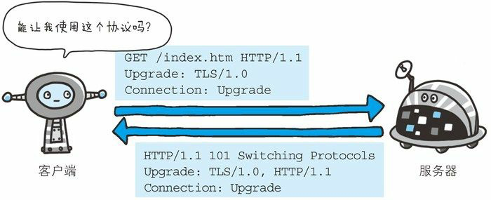 对于附有首部字段 Upgrade 的请求,服务器可用 101 Switching Protocols 状态码作为响应返回。
