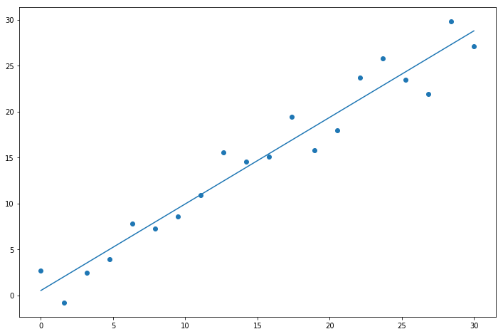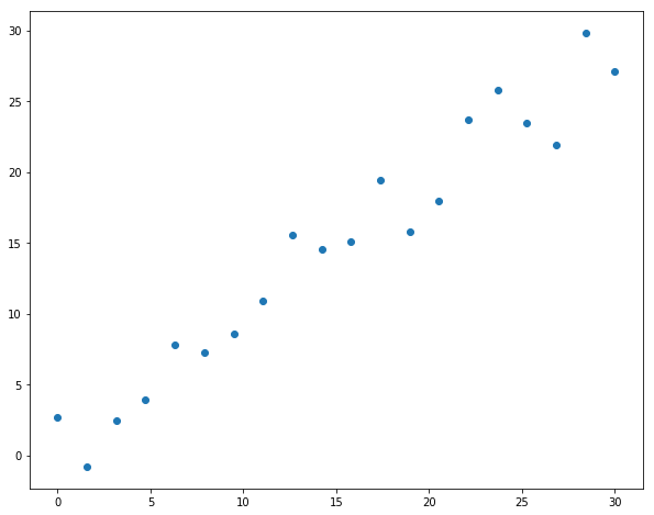y = x + 3*np.random.randn(20)