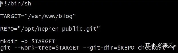 在.git/hooks文件夹中创建一个钩子文件:post-receive,注意没有后缀.sample,这样每当git仓库接收到内容的时候,就会自动调用这个钩子,把内容同步到网站根目录。需要修改post-receive权限使其可执行,chown git:git -R post-update/chmod +x post-update,需要保证TARGET已经创建,并且该目录以及子目录的权限属于git,这点很重要,否则会报Permission denied的错误。
