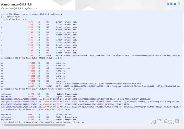 可能你还是不理解什么叫dns,它是怎么工作的?我们使用dig工具来深入解读一下域名http://nephen.cn是怎么解析出它具体的服务器地址的?