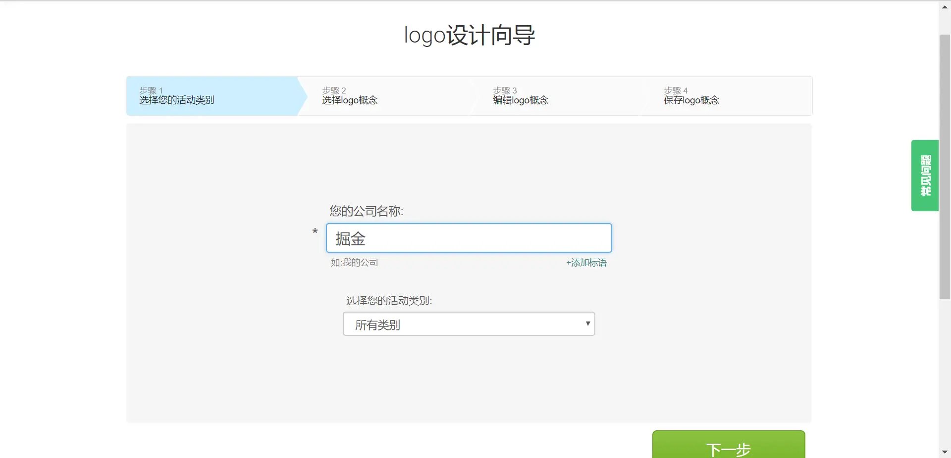 “开始制作logo”,直接进入logo设计向导页面,简单粗暴。