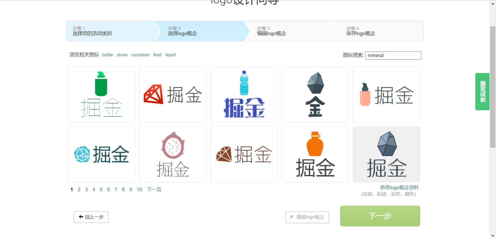 单击下一步,我们就可以进入第二个步骤:选择logo概念