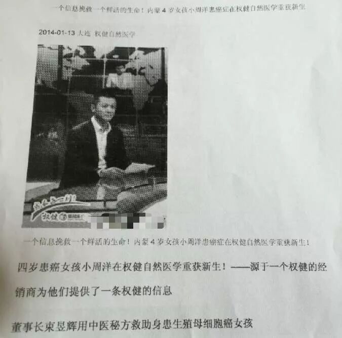 文章提到,3年前,内蒙古患癌女童周洋的父亲周大力受到权健公司人员劝说,让女儿放弃医院治疗,服用权健公司的“抗癌产品”,最终导致病情恶化身亡。