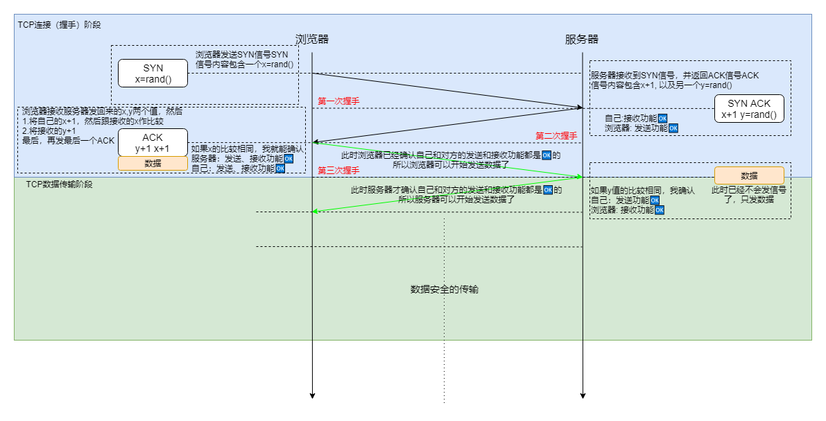 一张图解释TCP三次握手 XxjzZ 2018-12-27 550 阅读1分钟 需要注意的点 发送端是在第三次握手开始的时候就发送数据了,接收端是在第三次握手结束后才开始发送数据。 要理解为什么要发送x,y这两个数。 三次握手的必要性:在不安全的网络上建立安全的传输连接。 三次握手的充要性:发送方和接收方二者,各自确认,彼此的发送功能和接收功能都是OK的。 TODOs TCP断开连接的四次挥手 TLS连接的四次握手