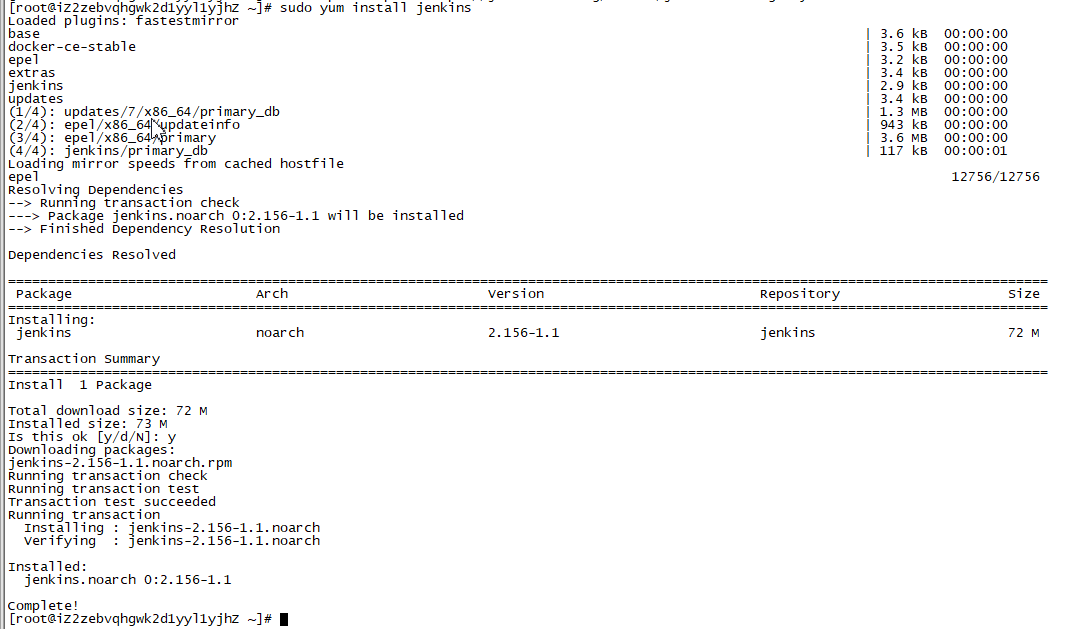 sudo yum install jenkins