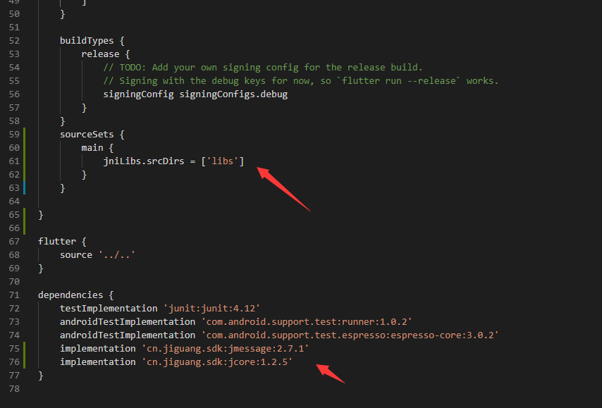 我最近在学习flutter,想做一个聊天的软件,但是没有现成的Im(即时通讯),搞得很是头大,于是想着自己去封装一个,今天学习跨平台的第三天,前端小白,本人是java不懂,Android不懂,凭官网的代码很难去自己封装一个sdk,于是我慢慢摸索,终于今天封装了sdk的一些小功能,给大家分享下。 1.下载官网的sdk,将其中的Libs放到app下,so文件放到src/min/jniLibs里面,如图