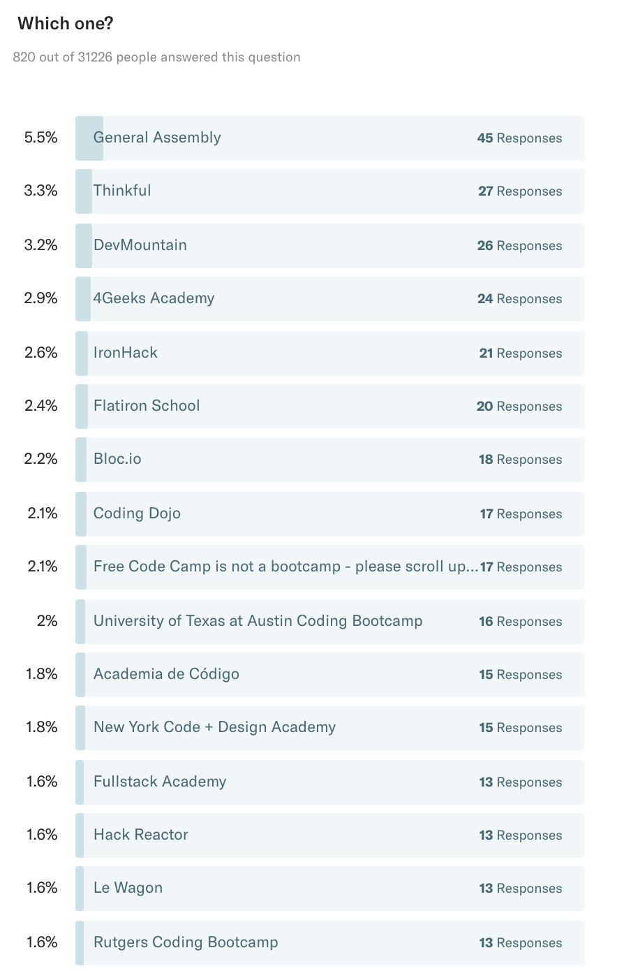 30% of respondents who attended a bootcamp had to take out a loan to do so. Still, 76% of respondents who attended said they’d recommend their bootcamp to a friend.