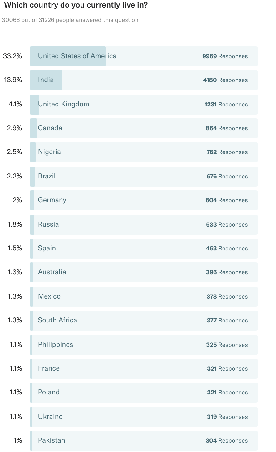 More than 31,000 new coders responded to this survey. These are people who have been coding for less than 5 years.
