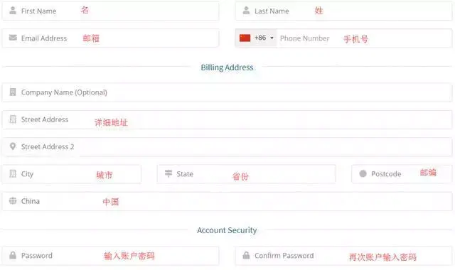 如图所示完善个人信息,全部用字母即可,空白的地方不用写,手机号记得选中国,国家也记得选中国。然后同意下面的注册协议并使用paypal付款就可以了。