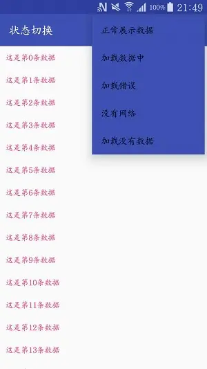 - State switching, so that the View state switch and Activity completely separate. Using builder mode to freely add the required state View, can set data, data is empty, load data error, network error, load and other states, and support the
