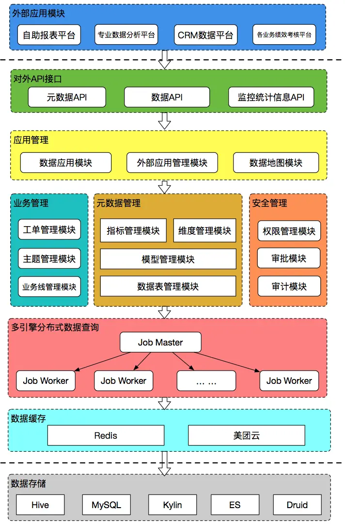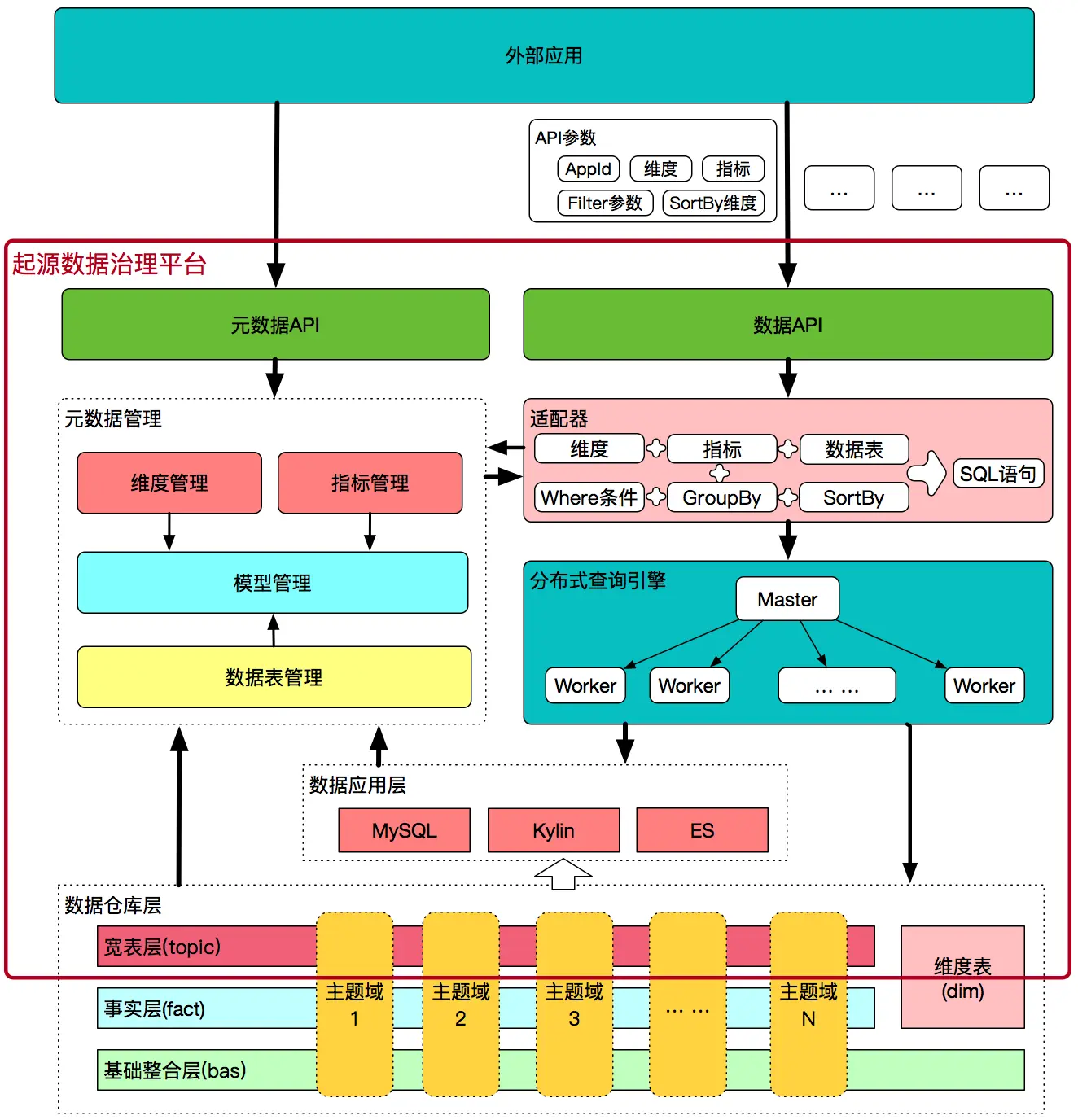- 统一数据出口的目标。实现了维度和指标元数据信息的唯一出口,维值和指标数据的唯一出口。
