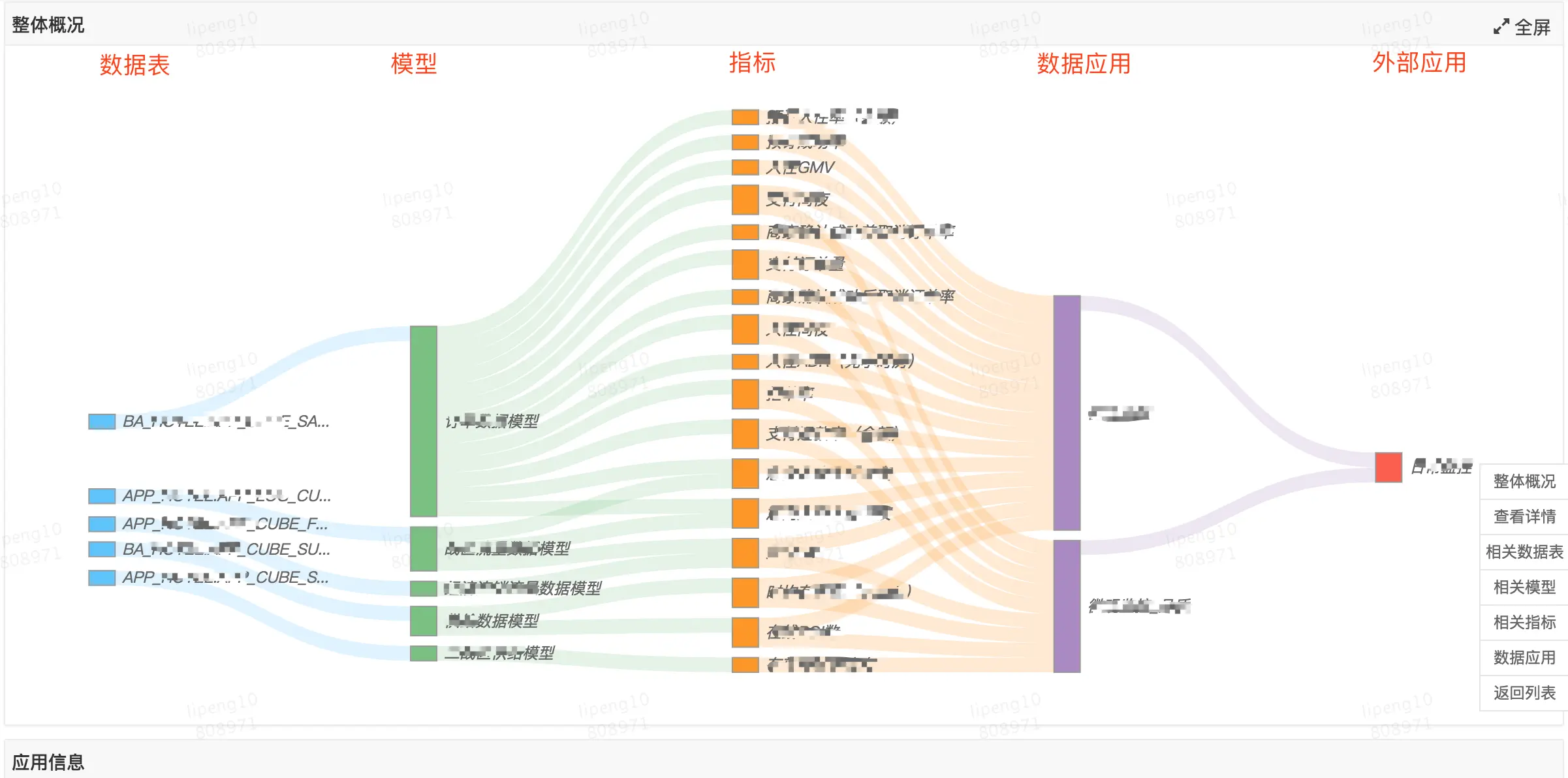 - 提标数据地图展示表、模型、指标、应用上下游关系及分布的能力。