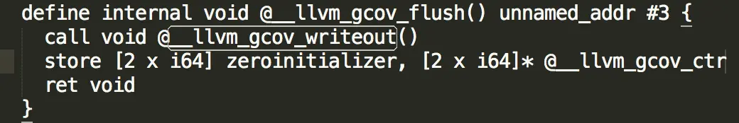 观察__llvm_gcov_flush的 IR 代码,可以看到:
