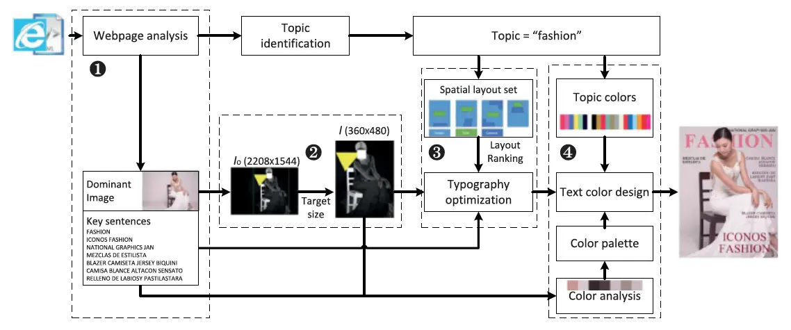 什么是Banner的设计过程?我们尝试总结了对Banner设计的理解,Banner的设计过程是一系列的具备某种特征属性的素材图层的有序叠加过程。这里的特征属性既包括颜色、形状、纹理、主题等视觉属性,也包括位置、大小、贴边等空间属性。在这个过程中,哪些环节可以被机器算法所探索呢?文献[1]研究了如何调整图像的颜色分布,使杂志封面的视觉效果更加符合人眼的视觉特性;文献[2]以此为基础,引入了基于显著性识别的图像裁剪,并使用优化方法来解决布局问题。阿里巴巴的鹿班系统在去年双十一当天,生成1.7亿张Banner;京东内部也在孵化玲珑和莎士比亚系统,更加智能地设计文案和Banner。