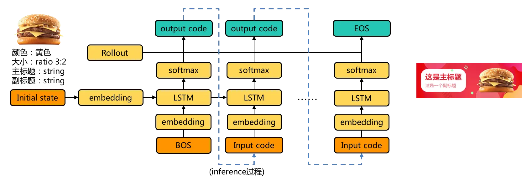 素材图层是Banner的基础元素,其本身可以被特征化,同时组成Banner的若干元素间的叠加顺序可以被序列化,因此,算法实际是在学习“在什么时候,选择某种素材,放在哪里”。