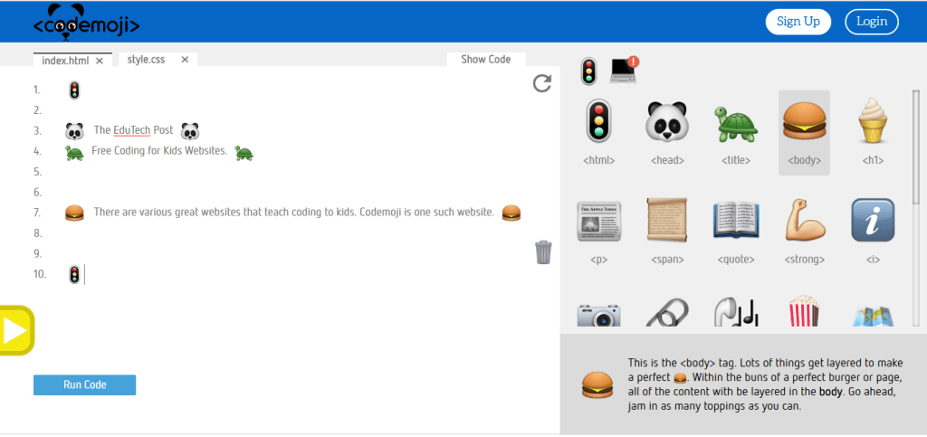 Codemoji.com是一个适合1~8年级青少年的趣味学习平台,你可以使用eomji学习编程,用emoji表情符号来表示不同的HTML/CSS/JavaScript代码块,来创建网站、动画或游戏等等。网站课程分为三个等级:新手、中级和高级。