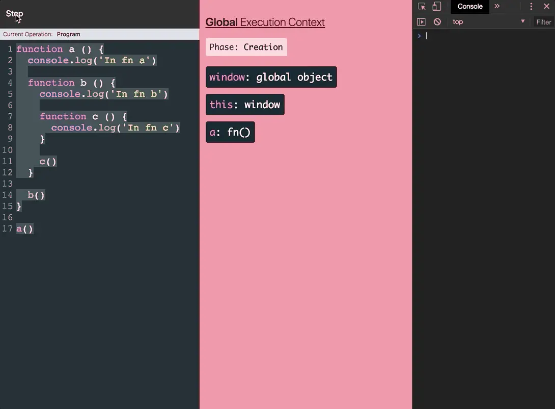 全局执行上下文:当Javascript引擎运行代码,第一个被创建的执行上下文叫做“全局执行上下文”。最初,这个全局上下文由这二位组成:一个全局对象和一个this变量。this引用的是全局对象,如果在浏览器中运行Javascript,那么这个全局对象就是window对象,如果在Node环境中运行,这个全局对象就是global对象。 在全局执行上下文的创建阶段,Javascript引擎会: