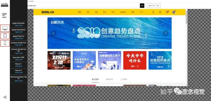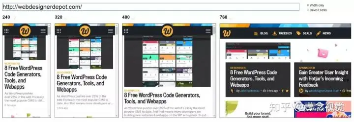 和 XRespond 的功能相似,Responsinator 也提供了不同屏幕尺寸下的预览效果。不过,Responsinator 的布局和前者不同,纵向滚动更符合日常的交互逻辑。