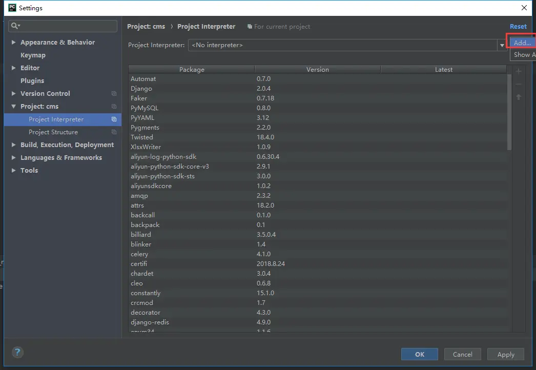 - 打开配置 pycharm > File > Settings > Project > Project Interpreter