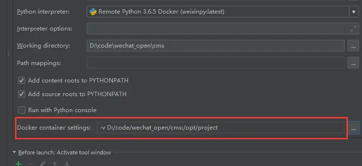 - 上一步选择镜像后下面会出现Docker container settings: