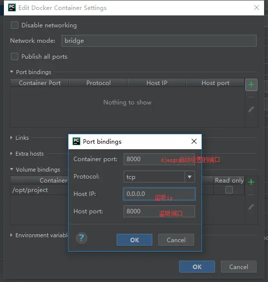 - 点开进行编辑,可以看到此时已经有了Volume bindings,还需要一个端口映射