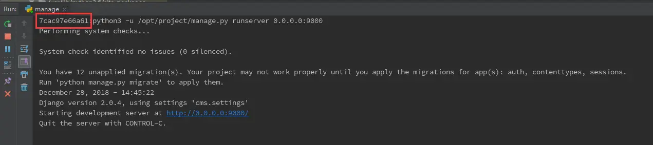 - 再次Run就已经是从容器中启动了(可以看到容器ID),使用Debug启动也是可以的