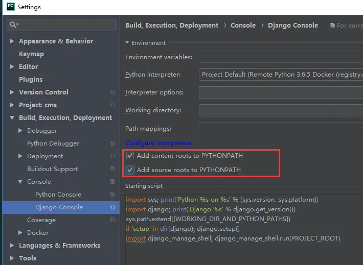 Q:使用Python Console打开django shell报错,错误示例: