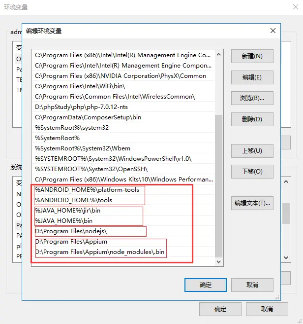 编辑→变量名:Path,变量值:%ANDROID_HOME%\platform-tools;%ANDROID_HOME%\tools;(切记一定要是英文模式输入)