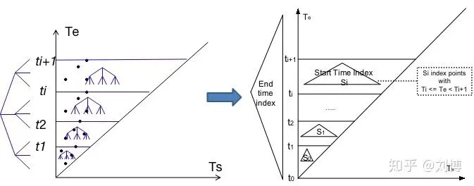 索引的过程是,首先,利用结束时间索引找到相应的开始时间索引,再在开始时间索引中找到对应的轨迹。