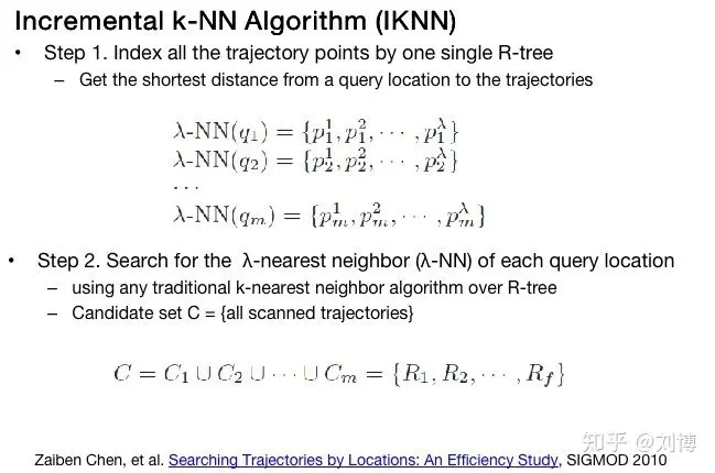 IKNN算法 第一步,索引所有轨迹点,得到目标点与轨迹之间的最短距离,以及对应的点。 第二步,得到f条轨迹,满足最近的lambda条距离。