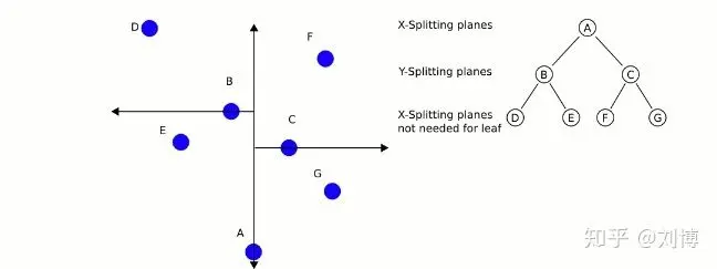 如何查询最近邻?首先找到对应的切割面,再找到最近邻。