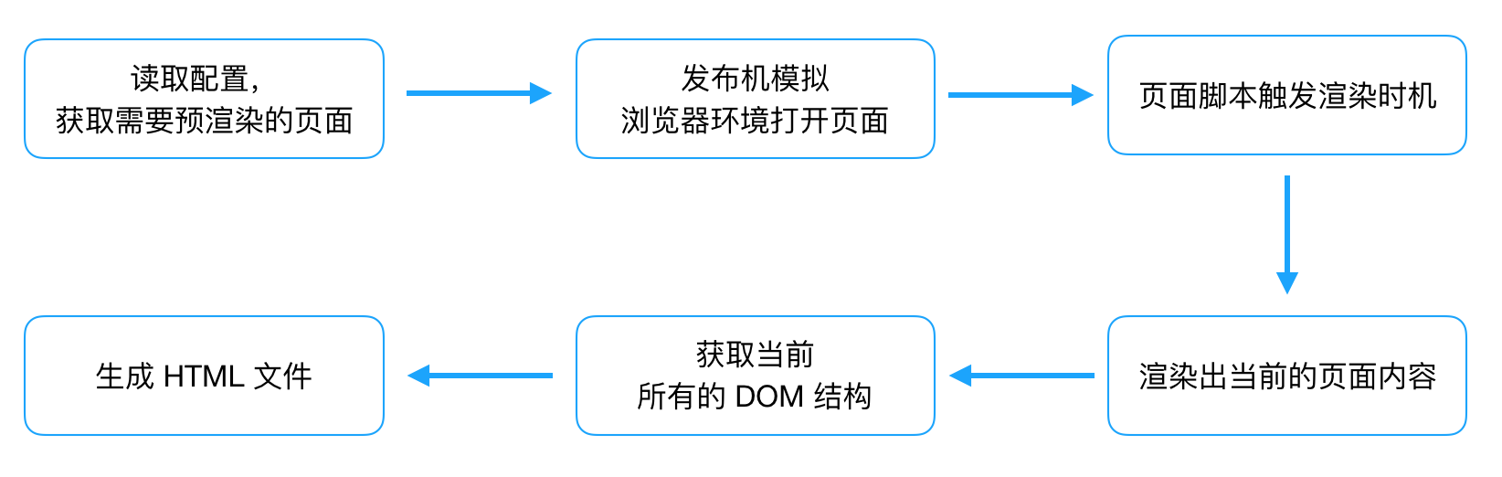 从流程图上,需要在发布机上启动模拟的浏览器环境,并通过预渲染的事件钩子获取当前的页面内容,生成最终的 HTML 文件。