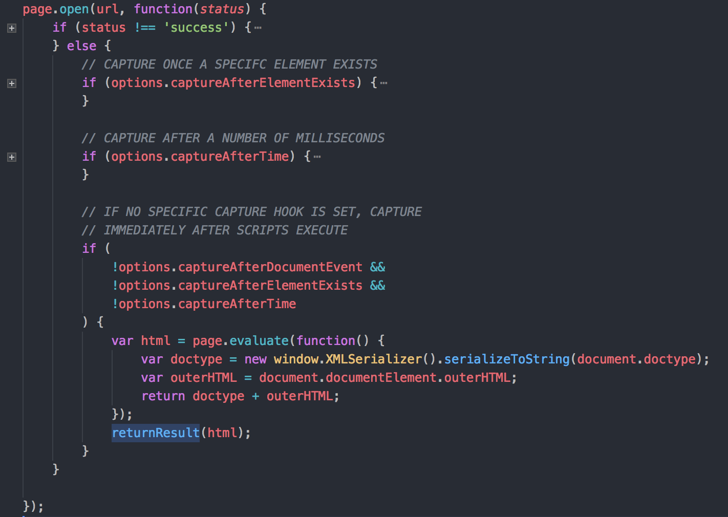 通过 phantom 提供的 API 可获得当前 HTML,示例如下: