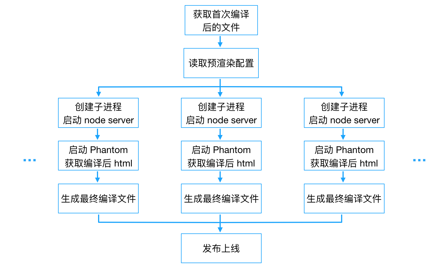 为了提高构建效率,并行对配置的多个页面或路由进行预渲染构建,保证在 5S 内即可完成构建,流程图如下: