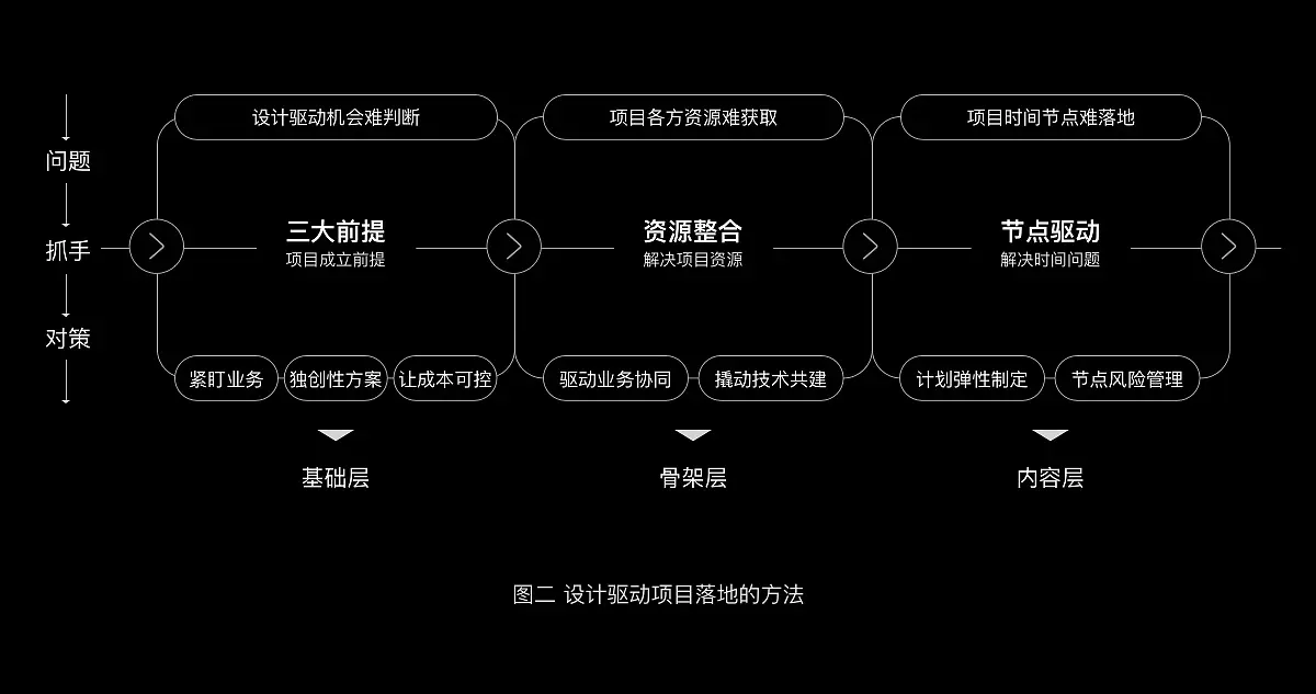 良好的项目前提可以让你精准地评估、判断设计驱动的机会点,确保项目有一个坚实的基础;链接各方资源组建项目团队,以支撑起整个项目骨架;有效执行项目节奏及时间节点,来确保项目如期上线。