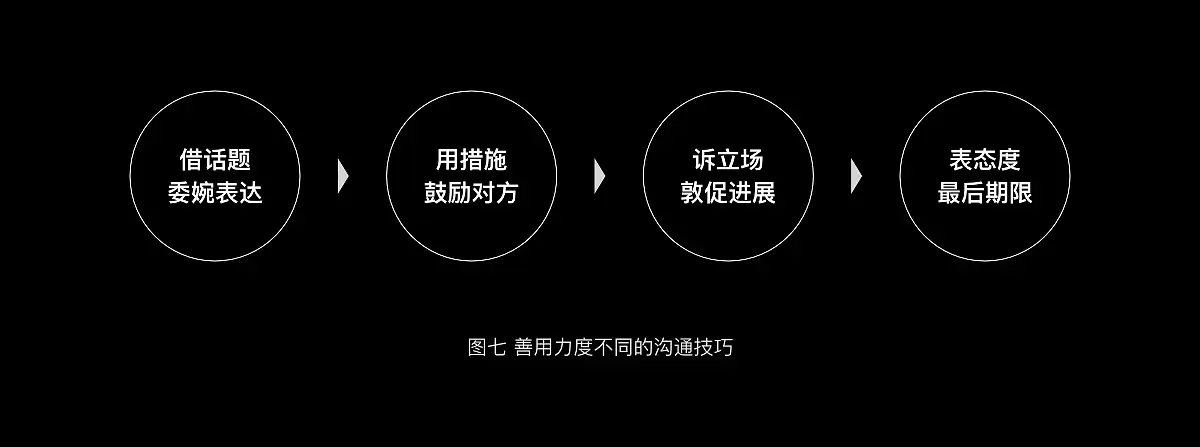 善用技巧、让沟通更有效:在实际项目过程中,大部分同事都是多个项目并行的,各方都会有一定的业务压力,在沟通过程中难免会有些摩擦和碰撞。当你与未建立稳定合作关系的同事沟通时,其实是一种黏度很小的社交弱关系的表现。过于强硬的沟通方式可能会造成冒犯之意,甚至对合作关系起到消极作用;而过软的沟通方式会显得不够迫切与急促,可能会造成推进缓慢。你可以根据项目节点不同的紧急程度,采用力度不同的沟通方式,以下排序从弱到强。