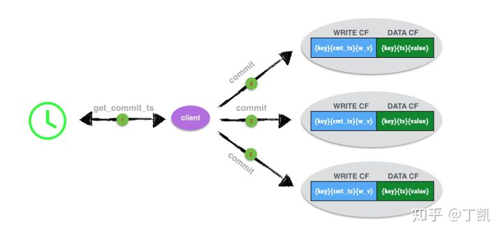 梳理事务的Commit流程一个关键的顺序是:事务Commit时,1). 检查其锁是否还存在;2). 先向WRITE COLUMN写入记录再删除LOCK COLUMN中的记录。