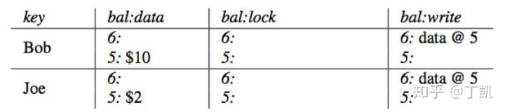 中写入WRITE COLUMN数据项并清理锁,整个事务提交结束。在本例中,只有Joe,写入的内容为