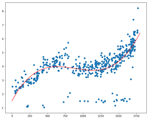 y = model2.predict(pd.DataFrame({'x2': x*x, 'x1':x}))