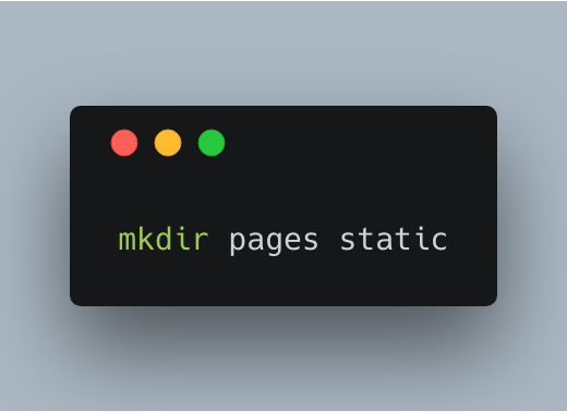 After that you have to create two necessary folders: pages and static . Next.js won’t work without them!!