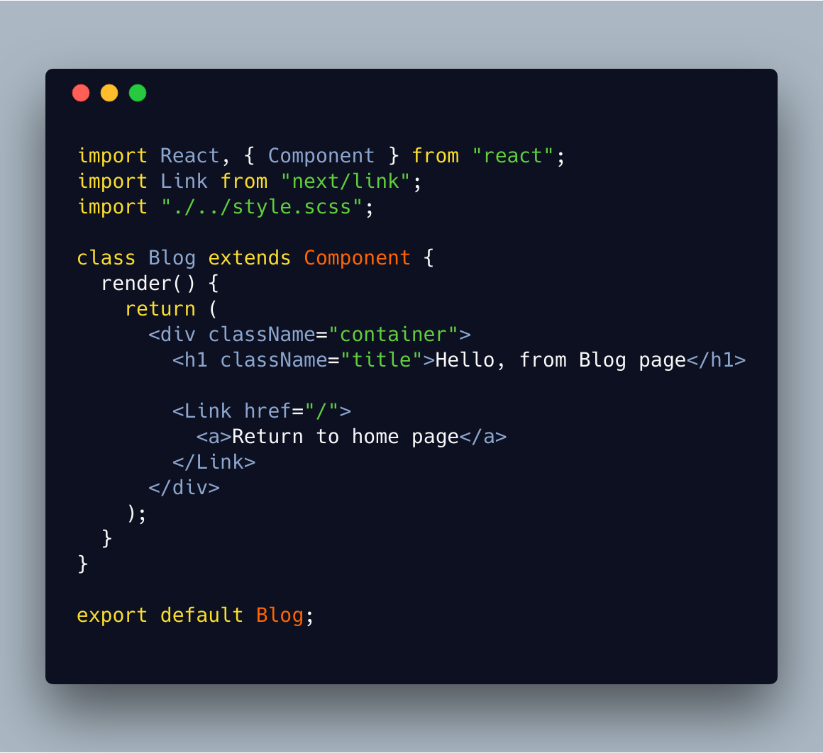 And then you can write a normal React component. As I said above, Next.js is for building React applications.