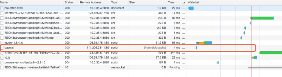 进入二级页面之后,base.js 直接从缓存读取:
