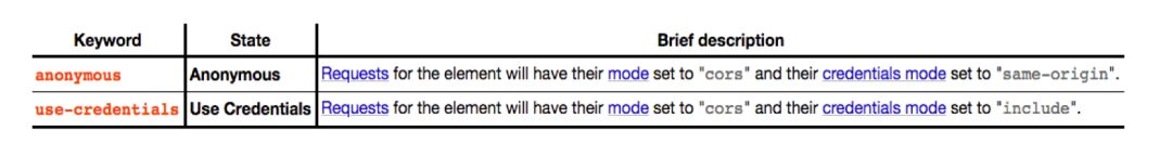 [3] CORS 配置:https://html.spec.whatwg.org/multipage/urls-and-fetching.html#cors-settings-attributes