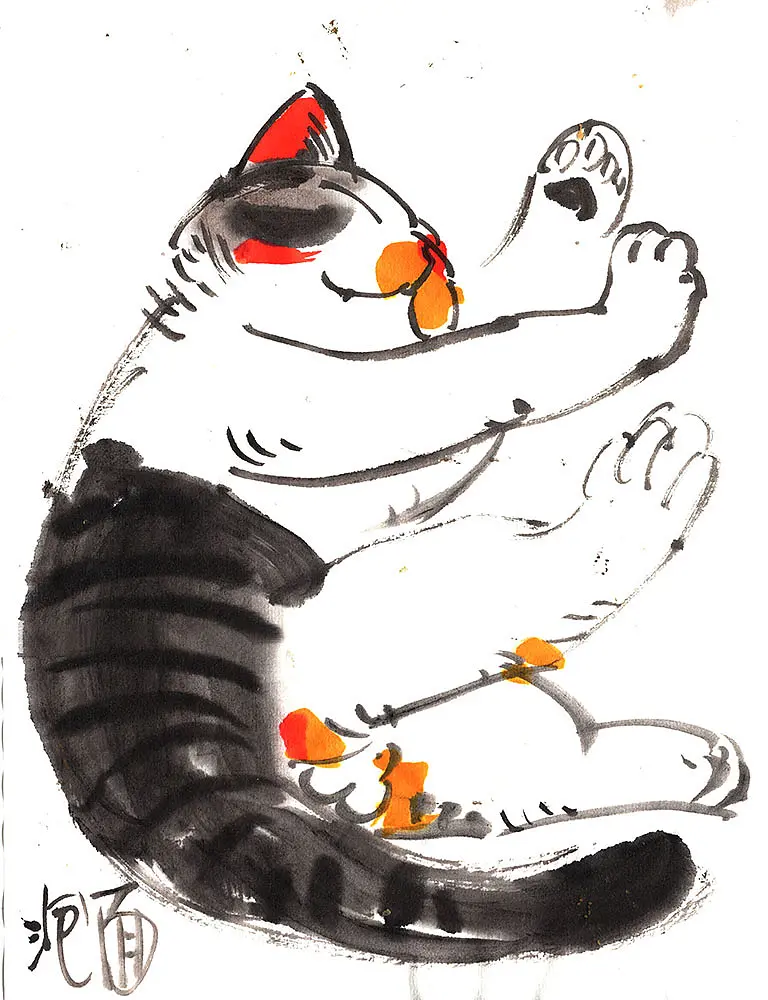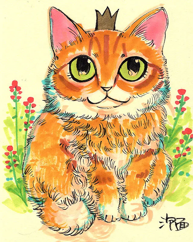 收养第一只猫是在大学时代,因为捡了这只猫,而且也特别可爱,就一直在画她。 这只猫叫“猫太“,因为卵巢肿瘤去世了,只有13岁。我有些伤感,希望大家养猫的时候,特别是母猫,一定要做好绝育工作。现在我家里有5只猫,全是领养的,“提倡领养,拒绝买卖”。