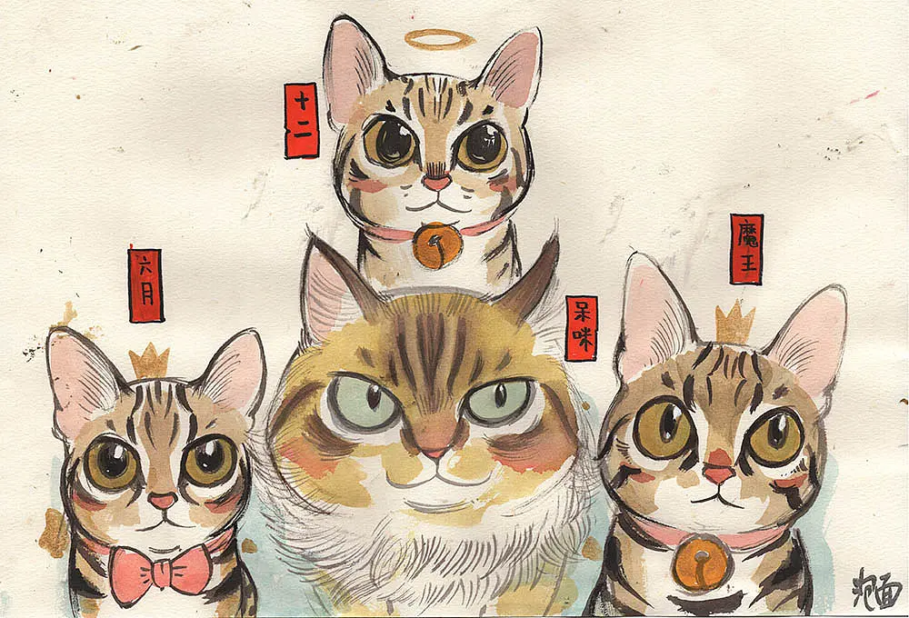 Fireye峰:提到你就能联想到你笔下的各种猫咪,是什么让你对画猫这么钟爱,你和猫咪之间有怎样的故事?