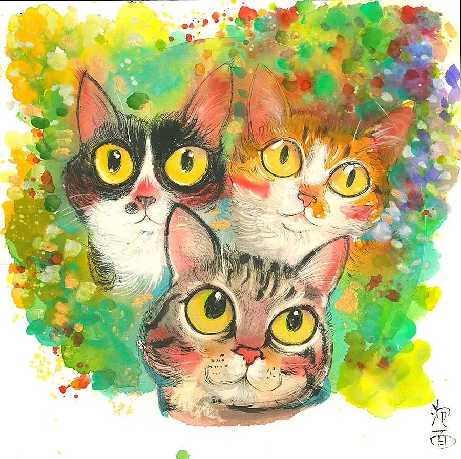 还是一碗泡面:大家好,我是一个养了五只猫的野生艺术家,以画画为职业。