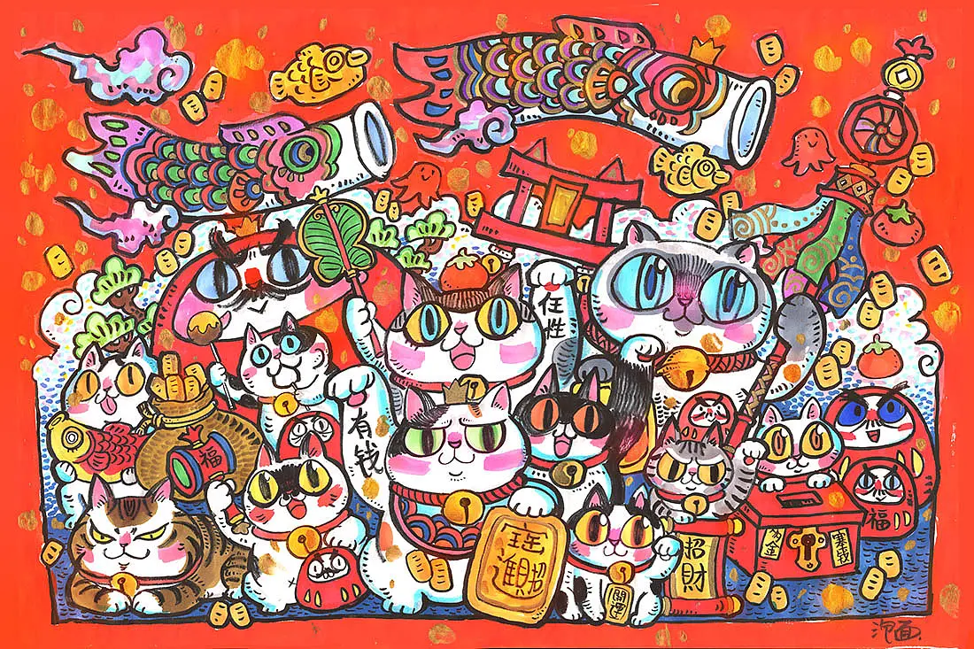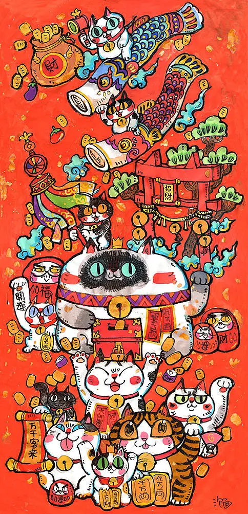 还是一碗泡面:以猫为题材创作,坚持了十多年,不管是以前在工作之余,还是成立个人工作室后,画猫一直是我工作和生活的一部分。在很早以前我就意识到自己跟画画天才差距有多大,我在智力等各方面是很普通的那种,甚至在平均水准线以下,那我能怎么办,我当时想了很多办法,也做了很多尝试。后面发现我只需要画一样东西就好了,只坚持做一件事情,一件很小的事情——画猫。于是我坚持了下来,成功了。