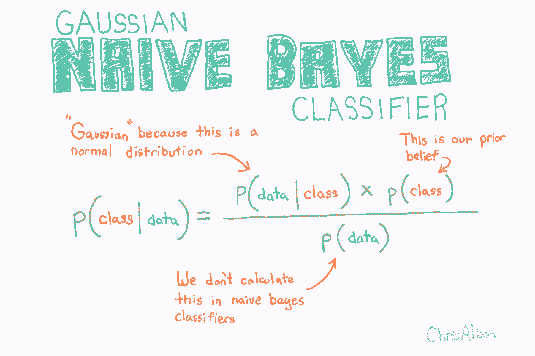 - 如果你查看似然中的每项,你会注意到,我们假设每个特征彼此不相关。 也就是说,脚码与体重或身高等无关。这显然不是真的,而且是一个“朴素”的假设 - 因此称为“朴素贝叶斯”。