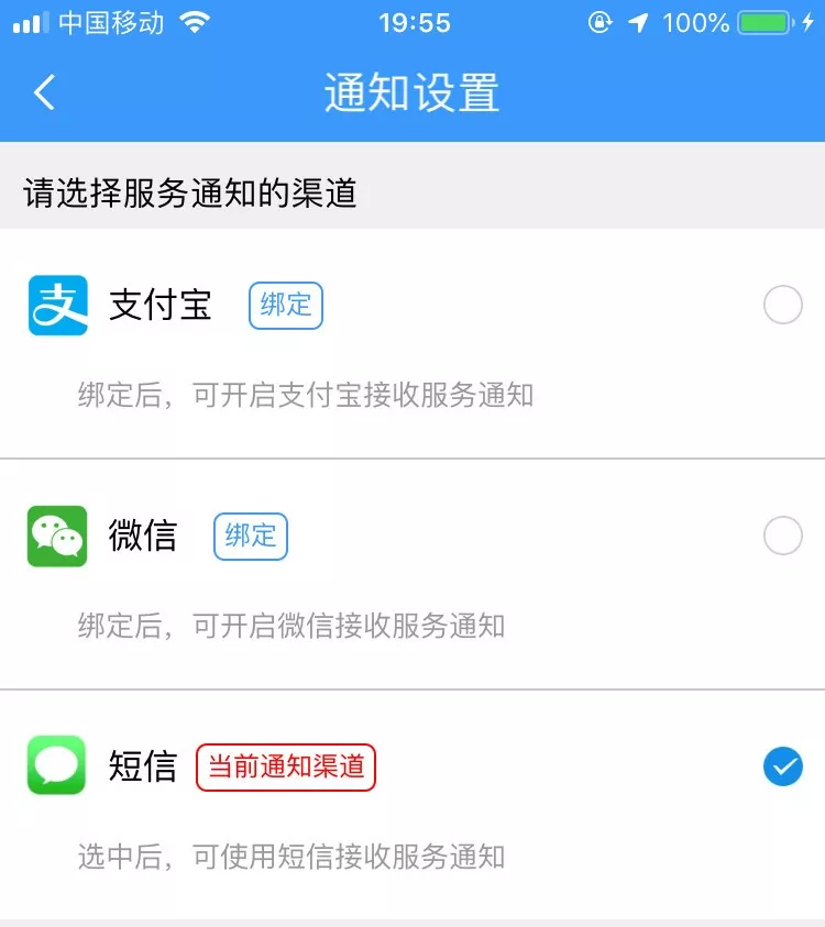 3、你还可以开启短信验证通知,这样有异常操作可以有短信通知。目前支持的通知设置有三种:支付宝、微信、短信。